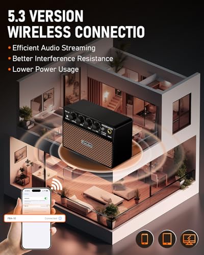 FBA-10 Guitar Amp, 10W Mini Electric Guitar Amplifier with Clean/Drive Channel, 6H Working, USB-C Rechargeable, 3.5mm Headphone/AUX Jack, Wireless Portable Amp for Indoor Practice, Small Gig