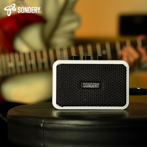 Compact and Portable Design: The Sondery SoundBase is a lightweight and compact mini amplifier, perfect for electric guitar players on the go. With dimensions of just 5 x 2.6 x 3.5 inches and a weight of only 12.8 oz, it easily fits in your gig bag.