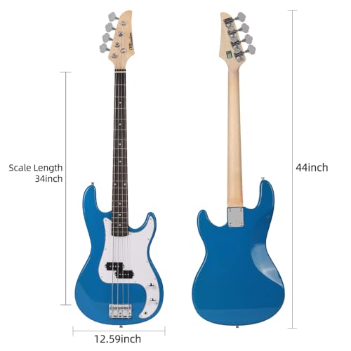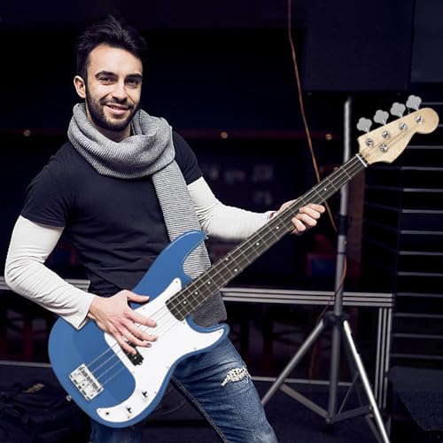 Electric Bass Guitar 4 Strings Full-Size Standard Bass PB-Style Beginner Kit Black for Starter with Gig Bag Guitar Strap and Guitar Cable, MS-FD (blue)