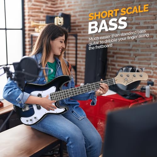 Complete Accessory Set: Includes 1 Electric Bass Guitar, 1 Amp Cord, 1 Portable Guitar Bag, 1 Shoulder Strap, and 1 Bass Pick. Start playing your bass immediately after unboxing