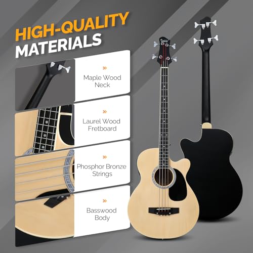 GLARRY Full Size Acoustic Electric Bass Guitar Beginner Kit, Cutaway 4 Strings Electric Acoustic Bass Guitar w/Inbuilt Tuner, Bag, Strap, Picks, Strings, Basswood Bass Guitarra, Matte Natural