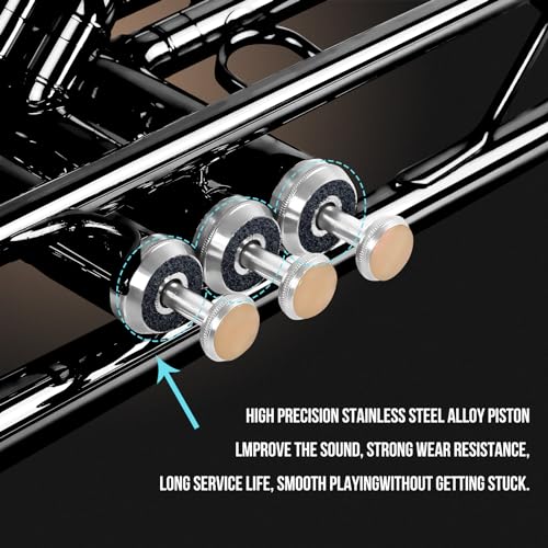 ❤️【Wonderful Tones】Our Standard Trumpet tone is pure and bright with a strong, brilliant, rich and powerful tone. The Bb trumpet features a 11.65mm/0.460inch pipe & 125mm/4.92inch bell mouth resulting in a rich,full sound with a tonal core.