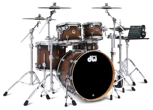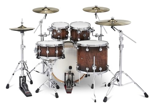 This DWe 5-Piece Drum Kit Bundle – Candy Black Burst Over Curly Maple bundle features a DWe 5-piece shell pack, 4 cymbal pack, and 5000 series 6 piece hardware pack.Features: