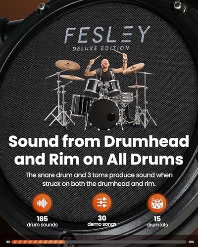 Fesley Electric Drum Set: 5 Drums 3 Cymbals with 4 Quiet Mesh Drum Pads, Electronic Drum Set for Beginner Adult, E Drum Kit with Drum Throne, Headphone, Drumsticks, USB MIDI, Intelligent Sound Module