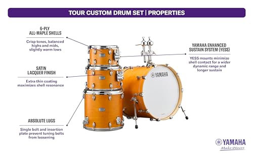 Inspired by Yamaha award winning Maple Custom Absolute and Absolute Maple Hybrid , Yamaha Drums fuses decades of being the most in demand touring and studio drums in the world for professionals by introducing Tour Custom. Designed with close consultation by Yamaha’s world-wide artist family, maximum projection through the wide dynamic range is achieved with 6-ply 5.6mm maple shells, 2.3mm inverse dynahoops and now with U.S. Maple grain under luxurious clear satin finishes. Professional options for working drummers on a budget.