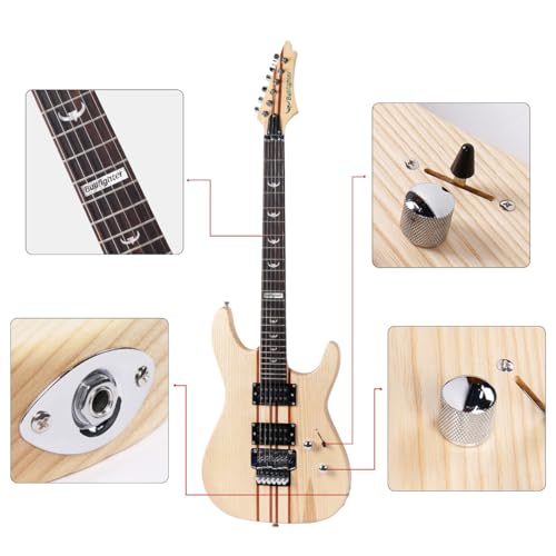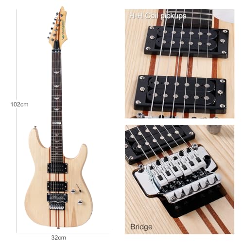 High-quality materials: including high-quality rosewood fingerboard, Elm Through Body neck,White pearl pattern scratch plate, 100% elm body, and zinc alloy fully enclosed knobs2 humbucking, rich in tone color adjustment.The entire guitar tone presents a typical rock style, and every piece of music you play will be very cool.