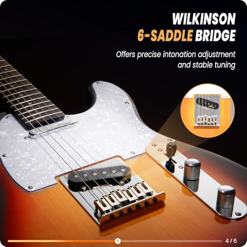 Fesley 39″ TL Style Electric Guitar:Solid Body Electric Guitars for Intermediate &Pro Players with Wilkinson Pickups,Grover Tuners,6 String Guitar with Roasted Maple Neck,Rosewood Fingerboard,Sunburst