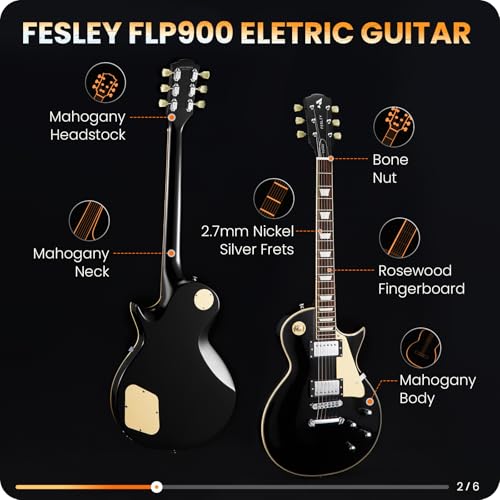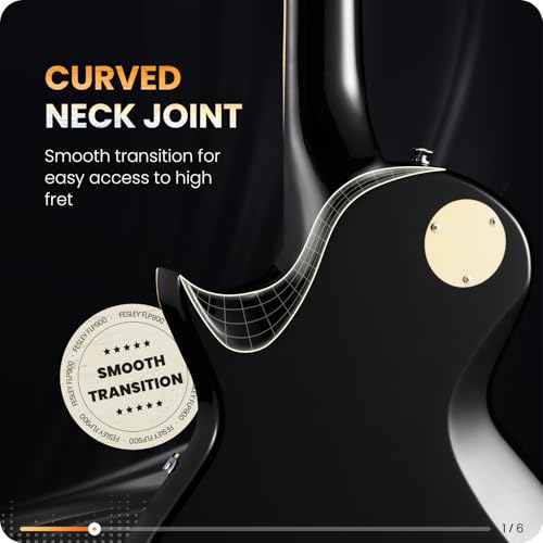 Fesley LP Electric Guitar with Arched Top:39″ Solid Body Electric Guitars with Mahogany Body and Rosewood Fretboard,Electric Guitar with Humbucker Pickups, Guitarra Eléctrica with Alice String,Black