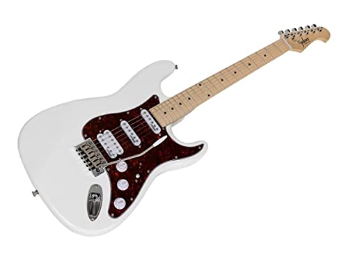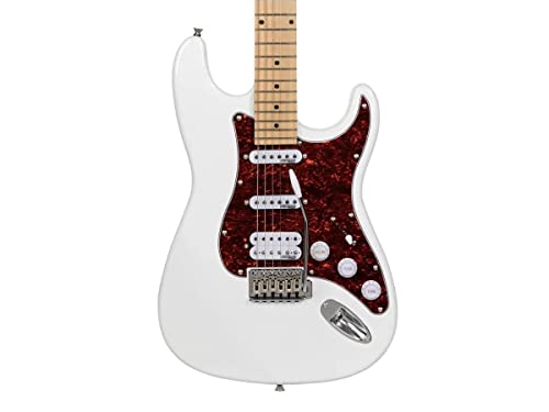Monoprice 6-String Cali DLX Plus Electric Guitar – Right Handed, Gig Bag, Solid Ash Body, Ivory – Indio Series