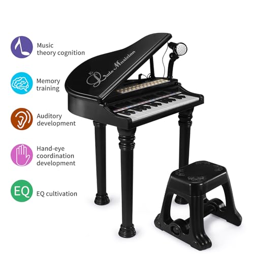 Kids Piano Keyboard Toy, Toddler Electronic Musical Instrument Educational Toy with Microphone, Multiple Sounds, Record Playback, Lights & Stool, Birthday Gift for 3 4 5 6 7 Years Old Girls