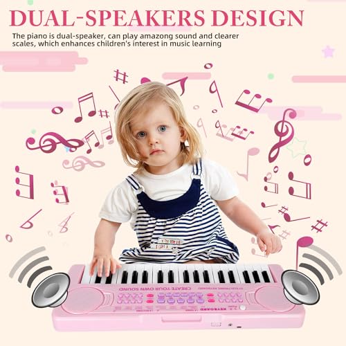 [Best Gift for Kids] The keyboard specially designed for children, with proper keyboard spacing and smooth key surface, makes the playing process easy and safe, and the color of this electronic keyboard is very unique, especially when it shines in the sun. This is a dream gift for 3-8 year old girls on birthdays, Christmas and other festival.