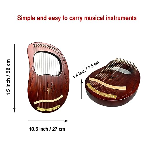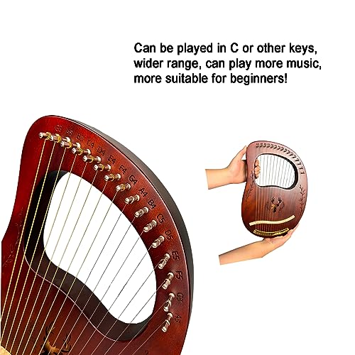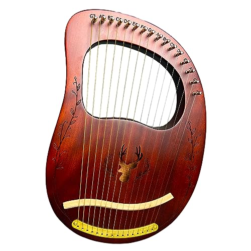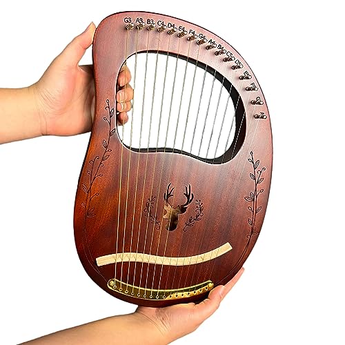 Lyre Harp, 16 Metal Strings,Whole Mahogany Body Made Without Splices, Easy to Carry Instrument, With Spare Strings, Bag,Picks, Tuning Lever, Music Manual(Coffee color)