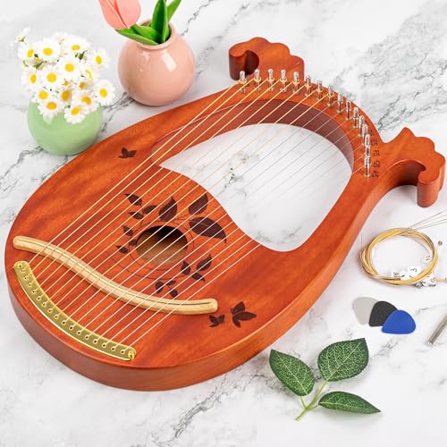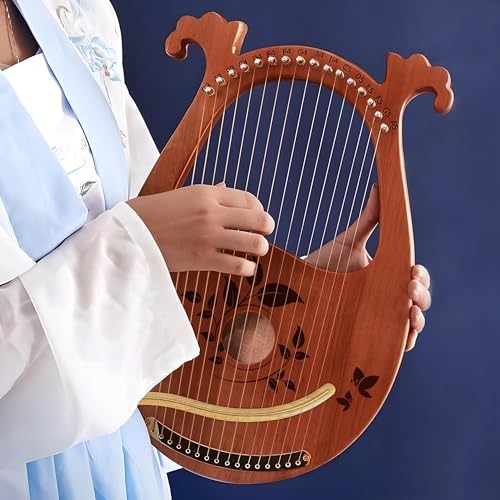 Lyre Harp Mahogany with Tuning Wrench and 16 Pcs Metal Spare String Set Manual Picks Black Gig Bag for Instrument Kids Adult Professional Beginner Music Lovers Gift