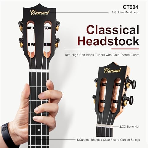 FINE CRAFTSMANSHIP- Caramel CT904 26 inch Tenor Ukeleles are made of Ebonywood with beautiful wood grain patterns makes the perfect choice for moonlit beach strolls and bonfire singalongs. The low string action and meticulously polished edges, especially on the frets, provide a smooth and comfortable playing experience. Suitable for both beginners and professional musicians.