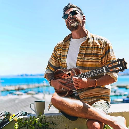 HIGH QUALITY – Start your musican journey with a real wood ukulele ,stop buying PLASTIC TOYS !Tenor ukuleles, 26 inch size is better than Concert, only 3 inches bigger but with better sound and wider spaced frets which are better for adults, novices, intermediate player or professionals who starts to practice on. This ukele pack is your best choice! Tuned G-C-E-A.