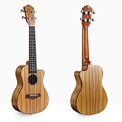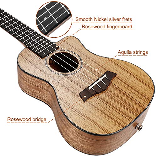 Amazing Sound – The acoustic Cutaway Concert ukulele body crafted from Black Walnut which exhibits a pleasingly warmer (textured mellow tone) and deeper tone (resonate bass). Having soft and smooth to touch Aquila strings definitely helps to make the sound that comes out of it resonate pretty clear and sweet which also holds tune through multiple plays very nicely
