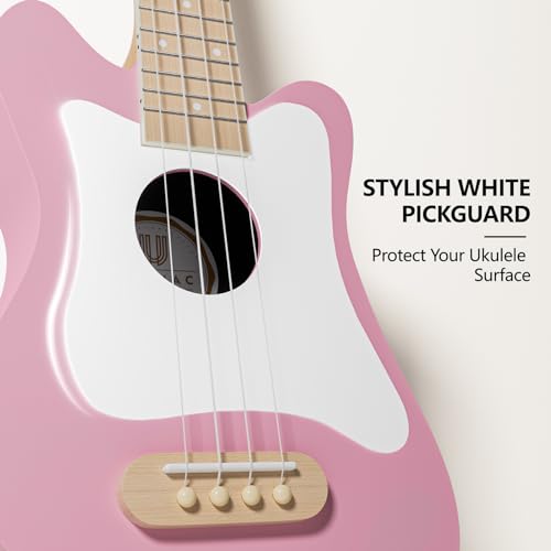 Soprano Ukulele, Stylish Shape with White Pickguard Spruce 21.5 inch Ukelele Beginner Kit with Gig Bag, Digital Tuner, Replacing Strings, 3 Guitar Picks, Strap, Cloth, Pink, P005WPN